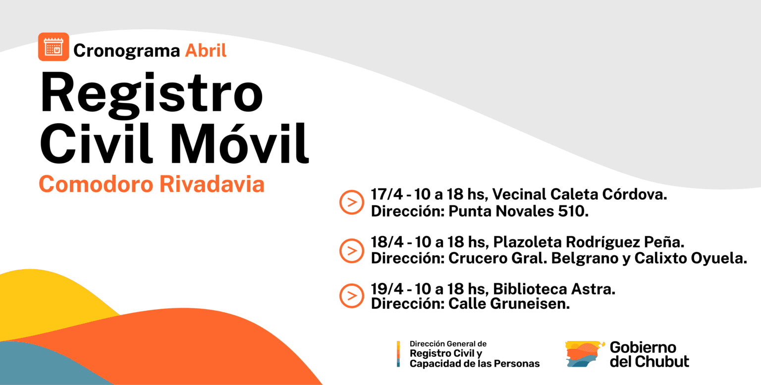 El Gobierno del Chubut informó que, a partir de la próxima semana, la Unidad Móvil del Registro Civil estará presente en distintos barrios de Comodoro Rivadavia, facilitando a los vecinos la realización de trámites de documentación sin necesidad de trasladarse a las oficinas centrales.
